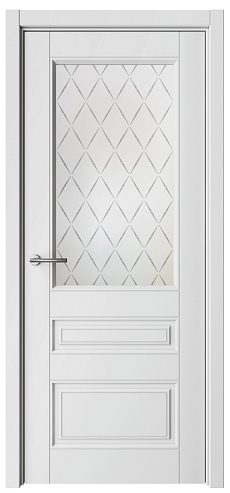 Дверь Классика-3 ширина 90 см Белый Эмаль Стекло мателюкс "Лорд матовое" кромка В цвет полотна в Рязани